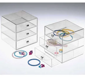 Inside your jewelry box, keep necklaces, bracelets, rings and brooches in different sections. If you have lots of earrings, you can use an earring caddy to organize them . Put all hair bands and scrunchies into a box together. Keep hats on the back of your door